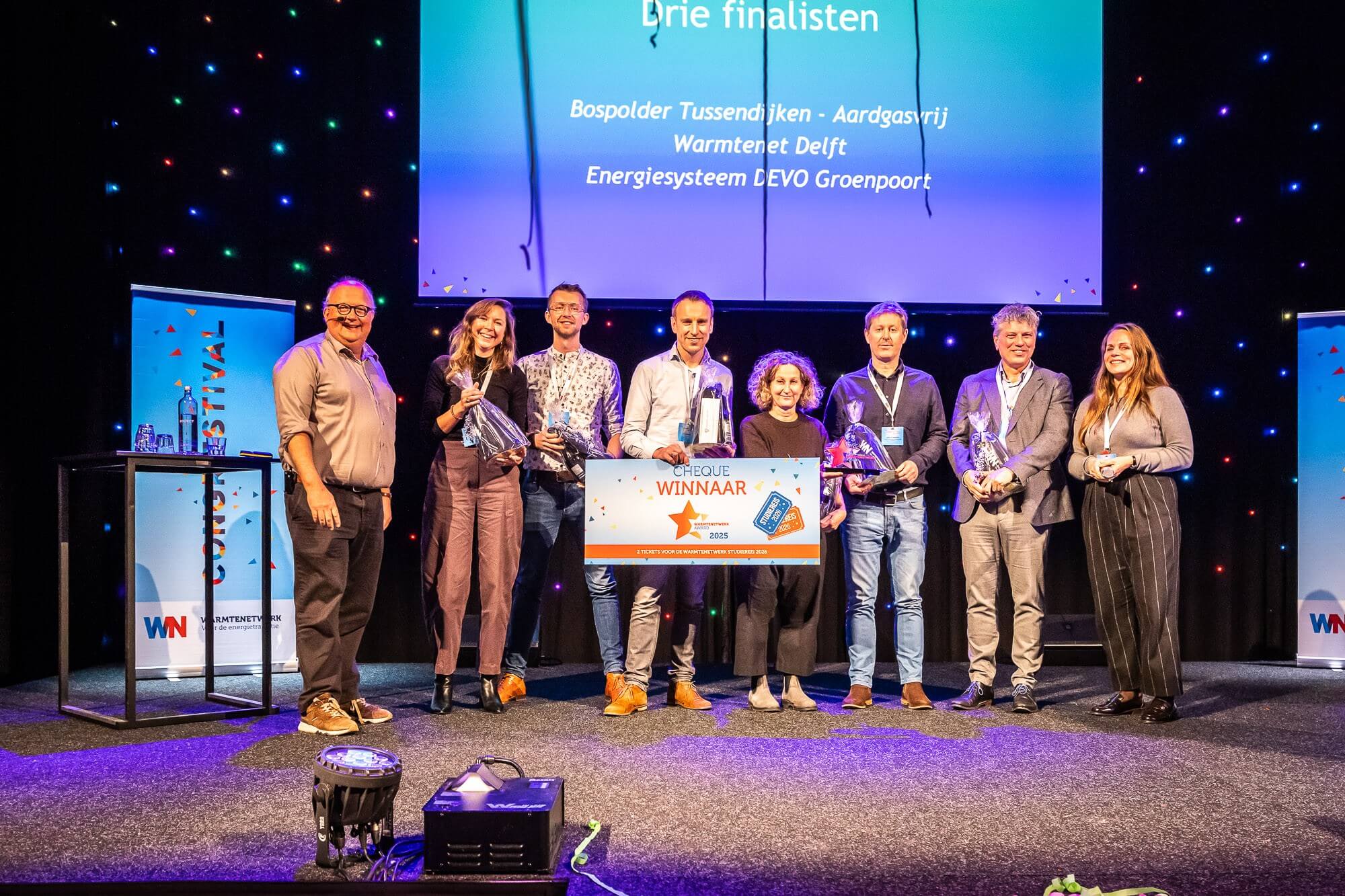 Uit de vele inspirerende inzendingen heeft de vakjury begin oktober drie finalisten geselecteerd die zich stuk voor stuk onderscheiden met hun bijdrage aan de warmtetransitie. Warmtenet Delft en het Energiesysteem van DEVO in Veenendaal waren de twee andere finalisten. Vervolgens was het aan het publiek: via een openbare stemprocedure heeft iedereen kunnen stemmen op zijn of haar favoriete finalist. Het was tot het laatst toe spannend, wie er zou winnen!